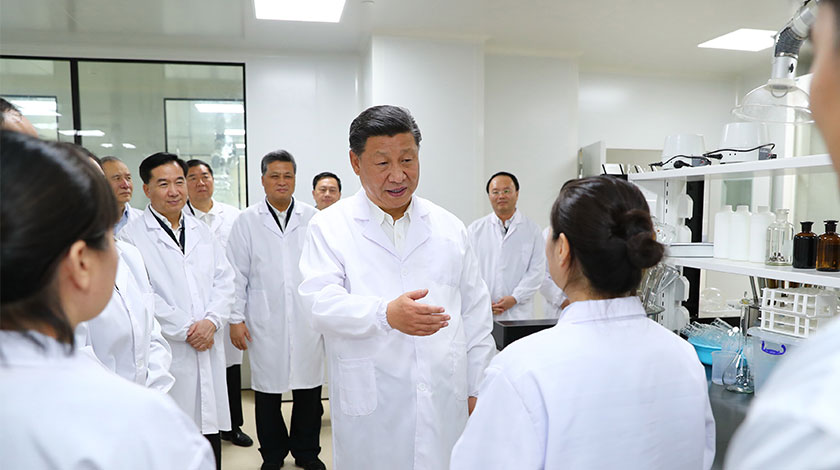 10月22日,中共中央總書記、國家主席、中央軍委主席習近平在廣東珠海考察。這是習近平在橫琴新區高新技術片區考察粵澳合作中醫藥科技產業園。 (新華社記者 謝環馳 攝)