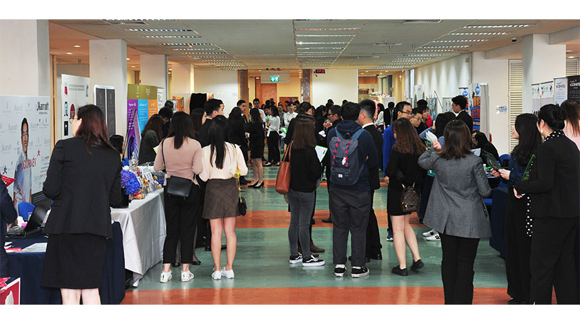 【特訊】旅遊學院於昨在氹仔校區舉辦「2019就業發展日」,56間來自不同領域的機構到校設置攤位,向學院應屆畢業生介紹職位空缺及就業資訊,協助他們瞭解澳門旅遊和服務業的就業情況和最新發展。就業發展日旨在為僱主及學生提供交流平台,讓應屆畢業生能充份掌握市場趨勢及業界要求,為日後之求職作更佳準備。