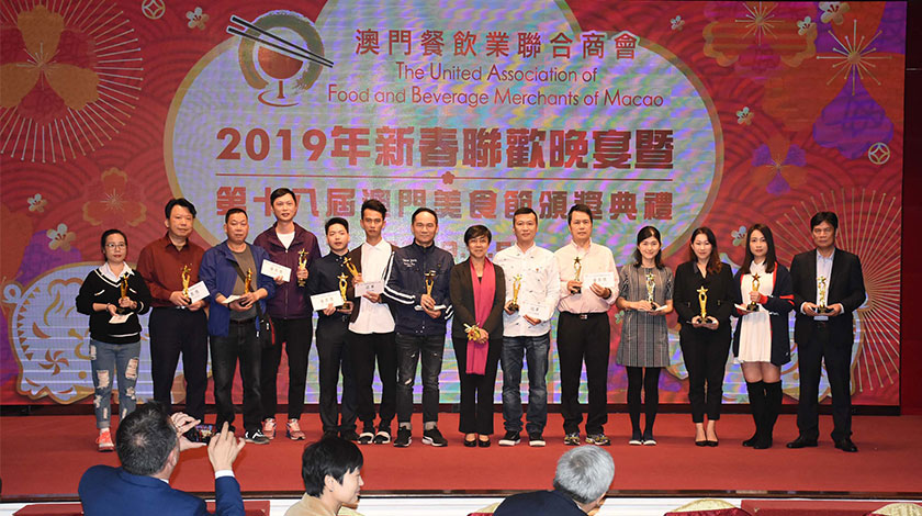 同場還進行一八年度餐飲業在職培訓計劃證書頒發、贈送《澳門餐飲業發展回顧與前瞻—紀念澳門餐飲業聯合商會成立五十週年》書刊,以及美食節攝影與攤位比賽頒奬等。