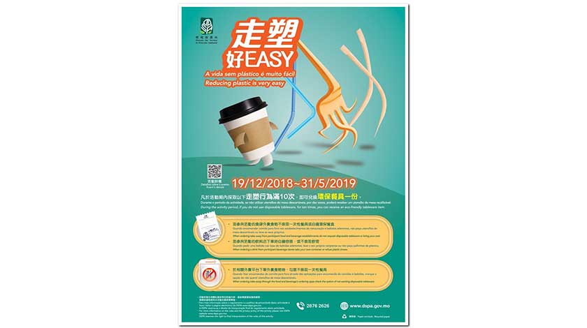 特區政府以促進人與自然和諧,建設生態文明城市為施政重點之一,並致力推動「源頭減廢,資源回收」,持續推動減塑工作,除了已就「膠袋收費」進行立法外,亦持續開展宣傳教育,包括已連續六年舉行的「減塑有著數」活動,累計參與人次超過26萬,至少減用了26萬個膠袋。同時,環保局與社團、外賣平台(平台內合作商戶約1300家本地食肆及飲料店),以及近200家本地食肆及飲料店合作推出「走塑好Easy」活動。另外,特區政府正推動在會議中不使用瓶裝水,環保局並與治安警察局合作為前線警員提供耐用水樽;同時,正逐步在公共設施設置飲水機,並已推出設置和使用飲水機的指引,環保局亦與社團合作豐富斟水地圖、在大型活動推動「斟水」文化。