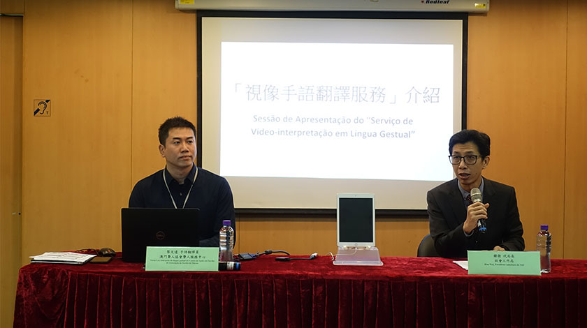 為進一步完善對聾人及聽障人士的無障礙資訊服務,社會工作局與澳門聾人協會合作推出「視像手語翻譯服務」。有關服務利用設於社會工作局20個對外服務點的平板電腦,由澳門聾人協會聾人服務中心的手語翻譯人員透過視像軟件,為前往社會工作局尋求和接受服務的聾人及聽障人士提供即時視像手語翻譯服務。這項服務除了能夠方便聾人及聽障人士外,亦有助提高手語翻譯服務資源的運用效率,節省了手語翻譯人員的交通及等候時間,讓既有的資源能夠服務更多有需要的人士。