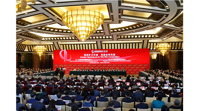 3月24日,中國發展高層論壇2019年會開幕式在北京舉行。本屆論壇的主題是『堅持擴大開放 促進合作共贏』。 (中新社圖片/ 韓海丹 攝)