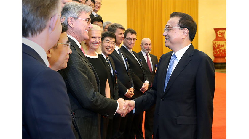 3月25日,中國國務院總理李克強在北京會見出席中國發展高層論壇2019年年會的境外代表並同他們座談。(中新社圖片/ 宋吉河 攝)