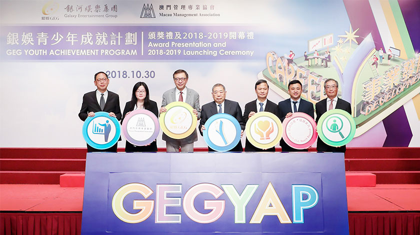 【特訊】銀河娛樂集團(下稱「銀娛」)一直以來重視本澳青少年全面發展,冀透過不同渠道協助其發掘個人潛能、提升自我及樹立正面的人生觀。自2011年起,銀娛連續7年聯同澳門管理專業協會(下稱「管協」)合辦「銀娛青少年成就計劃」,至今已為超過2600名學員提供多個主題系列活動,旨在鼓勵他們主動認識自我、積極參與社區事務及為自身事業發展作充分準備。為表揚第七屆學員過去一年的傑出表現,銀娛昨(30)日下午於星際酒店八樓宴會廳舉行頒獎禮,並為下一屆計劃進行簡單而隆重的啓動儀式,迎接來年的新學員。