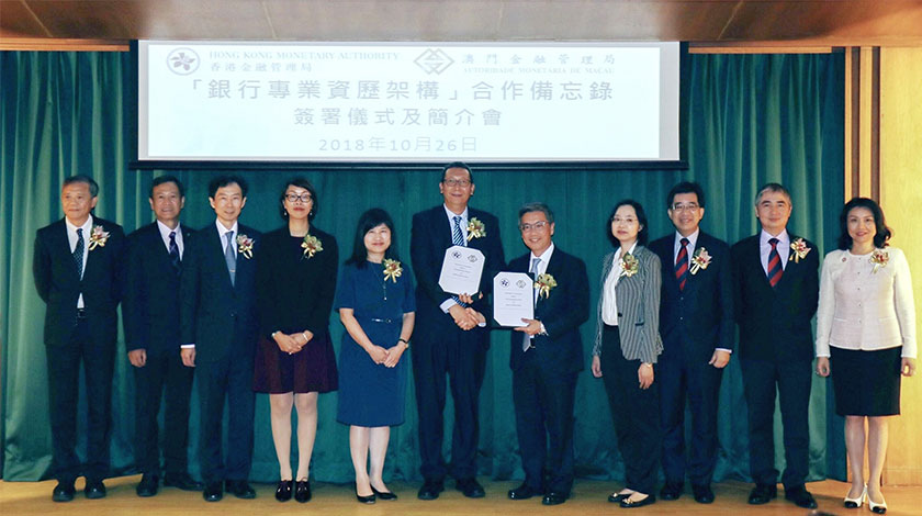 根據簽訂的《銀行專業資歷架構合作備忘錄》,澳門金管局與香港金管局將互認兩地在「銀行專業資格架構」下的專業能力培訓和獲取的專業資格,未來將透過澳門金融學會與香港銀行學會共同舉辦的培訓課程,促進兩地人才交流,增強銀行從業員專業能力,以擴闊職涯發展空間。