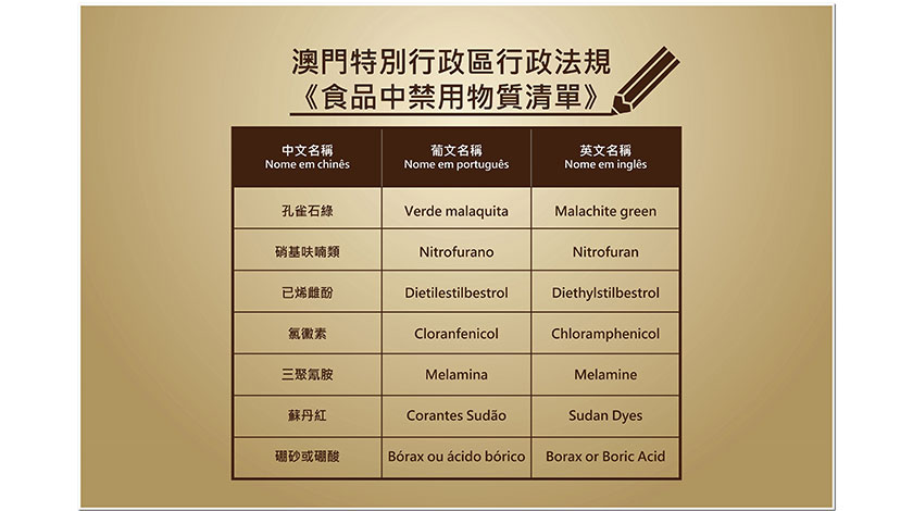 過去,食品業界在食品中不當添加硼酸及硼砂以提升口感,也有用於處理肉類以防止變黑及增加脆度。然而,進食硼砂後會在人體內轉變成硼酸,不易被排出,連續攝入可在體內蓄積,影響人體健康。硼酸及硼砂為本澳食品中的禁用物質,根據第5/2013號法律《食品安全法》規定,食品的生產經營須符合食品安全標準及使用原則,違法者最高可被判處五年徒刑或被科處最高六百日罰金;如屬行政違法行為,將可被科處澳門幣五萬元至六十萬元的罰款。