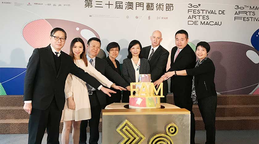 文化局昨假美高梅維天閣,舉行「第三十屆澳門藝術節」新聞發佈會,邀請文化局局長穆欣欣、旅遊局局長文綺華、美高梅中國控股有限公司首席執行官及執行董事簡博賢、澳門航空股份有限公司執行董事會主席兼總經理陳洪、中國銀行澳門分行個人金融與渠道管理部副總經理顏奕恆、澳門廣播電視股份有限公司傳訊事務及多媒體科代經理張少歡、文化局副局長梁惠敏及陳繼春等嘉賓以及參與演出的劇團代表出席。