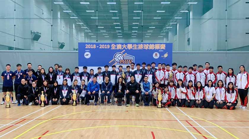 【特訊】由澳門專上學生聯會主辦、中國澳門排球總會及澳門大學協辦,《2018-2019年度全澳大學生排球錦標賽》已於3月24日順利完成。經過連場激烈角逐,理工學院於男子組決賽中以直落兩局擊敗澳門大學,取得冠軍;女子組方面,澳門大學於單循環賽制下四戰全勝,收穫冠軍。