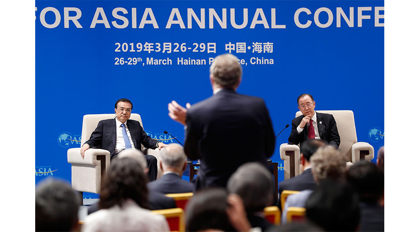 3月28日下午,中國國務院總理李克強在海南博鰲同出席博鰲亞洲論壇2019年年會的工商、金融、媒體、智庫代表舉行對話會。各國各界知名人士200餘人出席。 (中新社圖片/ 劉震 攝)
