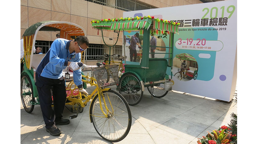 【特訊】交通事務局早前為私人經營的人力腳踏三輪車(下簡稱:三輪車)進行年度檢驗,藉此保障三輪車的行駛安全,並提醒業者注意車輛的日常維修保養。受檢的49台三輪車合格,另有9台缺席,局方會於4月向缺席檢驗的車主發出年度檢驗通知書,呼籲車主盡快把三輪車駛往澳門摩托車檢驗中心受檢。