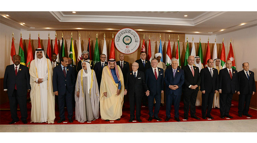 3月31日,在突尼斯首都突尼斯市,與會領導人和代表在阿盟首腦會議前合影。 第30屆阿拉伯國家聯盟(阿盟)首腦會議於3月31日在突尼斯首都突尼斯市召開。(新華社發)