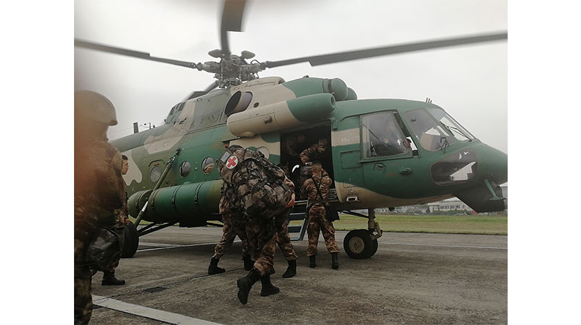 4月1日,西部戰區總醫院抽組燒傷、重症、呼吸等科室的骨干力量15人組成應急醫療隊,攜帶相關醫療物資,乘直升機從成都鳳凰山機場出發,前往四川涼山木裡縣救援。3月30日17時,四川省涼山州木裡縣境內發生森林火災。據知,火災發生後,四川森林消防總隊涼山州支隊指戰員和地方撲火隊員共689人在海拔4000余米的原始森林展開撲救。撲火行動中,受風力風嚮突變影響,突發林火爆燃,瞬間形成巨大火球,在現場的撲火人員緊急避險,但27名森林消防指戰員和3名地方撲火人員失聯。截至目前,已搜尋到26具遺體,其餘失聯人員目前仍在緊張搜救中。(中新社圖片/ 西部戰區總醫院供圖 攝)