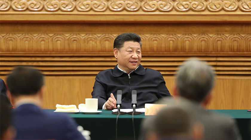 11月1日,中共中央總書記、國家主席、中央軍委主席習近平在北京人民大會堂主持召開民營企業座談會併發表重要講話。 (中新社圖片/ 盛佳鵬 攝)