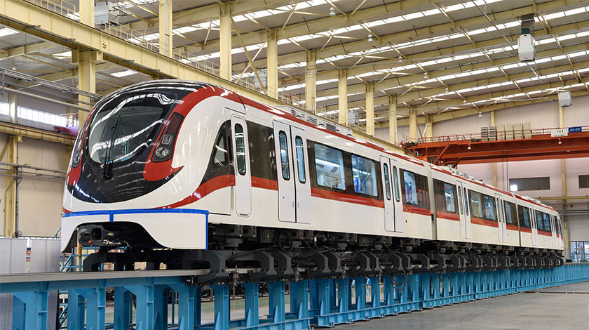 11月2日,由中車大連機車車輛有限公司製造的首列新一代中低速磁浮車在遼寧大連旅順新廠區正式下線,即將進入靜態調試階段。據大連機車方面介紹,新一代中低速磁浮車為鋁合金材質,三節編組,兩端均設有駕駛室,車輛高度與普通地鐵車輛基本相同,可通過50米最小平面曲線,最大坡道千分之一百,最大運行速度為每小時160公里。圖為10月31日拍攝的資料圖。(中新社圖片/ 劉春義 攝)